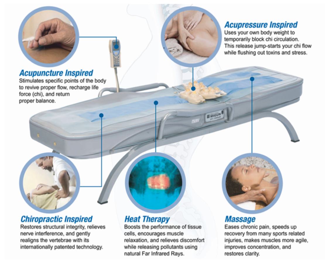 This Jade table combines infrared heat and acupressure to gently stretch and flex your spine, all while relaxing muscles and detoxifying the body.